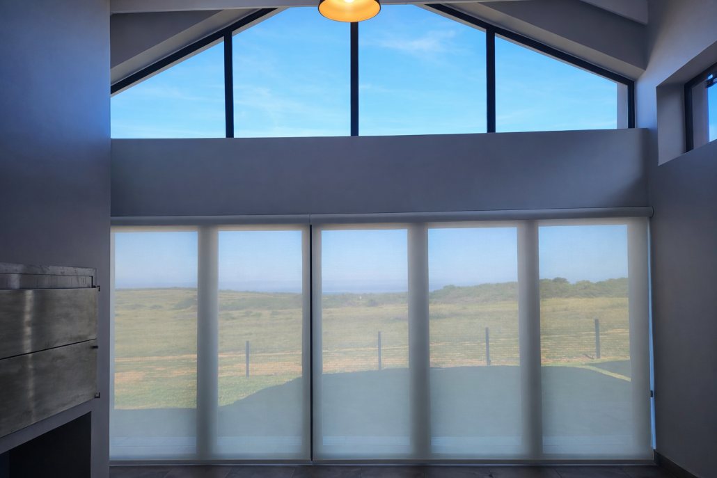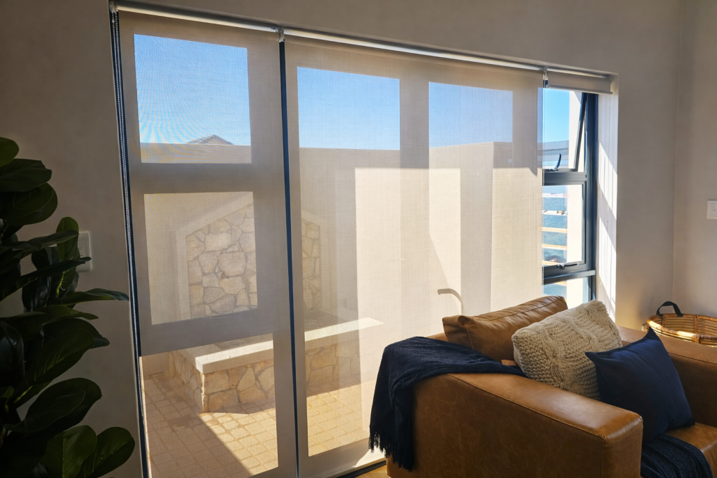 Sunshade Blinds fall between Nash & Natal Roller Blinds by diffusing light more than Natal Transparent but, they still let light into the room.