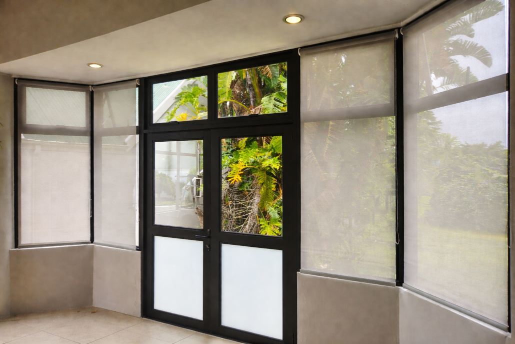 Roller Sunshade Blinds offer privacy both during the day and night.